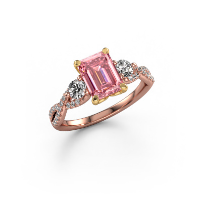 This 14 Carat rose gold ring is called Marilou EME and is set with pink lab grown diamond. How would you describe the style of the love of your life? Does she have a unique sense of style? This stunning split band rose gold engagement ring can be custom-made to your own or her liking. Our pink lab grown diamonds gemstones have been carefully selected because we believe your luxury engagement ring must be adorned with nothing but the most beautiful gemstone. Don't you agree? This jewel is made to shine bright around your finger. Each jewel is hand made with love by our goldsmiths.After receiving your order, our goldsmiths will start the creative process of making your Marilou EME engagement ring. We don't keep stock. This is advantageous because these costs will not be passed on to you. Therefore, we can offer jewellery at exceptionally low prices.Do you have a specific ring in mind? One you came across somewhere. Please feel free to tell us your wishes and we will turn your design into a unique engagement ring. You can follow the development of your ring design because we use 3D drawings. This gives you a realistic preview of your design. We will gladly send you a non-binding offer, based on a fair price/ quality ratio. It will amaze you.To make it easier for you, we offer a 30 day return policy. Check our terms and conditions.