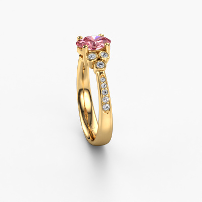 This 14 Carat gold ring is called Lucy 2 and is set with pink lab grown diamond. How would you describe the style of the love of your life? Does she have a unique sense of style? This stunning graceful gold engagement ring can be custom-made to your own or her liking. Our pink lab grown diamonds gemstones have been carefully selected because we believe your classic engagement ring must be adorned with nothing but the most beautiful gemstone. Don't you agree? This jewel is made to shine bright around your finger. Each jewel is hand made with love by our goldsmiths.By using our modern techniques, we can design and customize the finest quality jewels with the utmost care for you. Our engagement rings are always priced 30 percent lower than other jewellers. We make engagement rings to order so we don't have to maintain a large stock. If you have a certain budget, we are more than happy to advice you accordingly.Do you have a specific ring in mind? One you came across somewhere. Please feel free to tell us your wishes and we will turn your design into a unique engagement ring. You can follow the development of your ring design because we use 3D drawings. This gives you a realistic preview of your design. We will gladly send you a non-binding offer, based on a fair price/ quality ratio. It will amaze you.To make it easier for you, we offer a 30 day return policy. Check our terms and conditions.