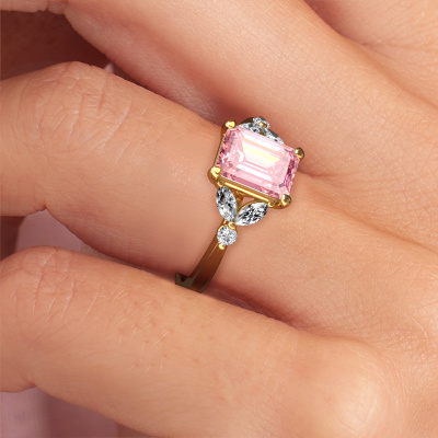 This 14 Carat gold ring is called Megan EME and is set with 8x6 mm pink lab grown diamond. What is it that makes your relationship unique? What is it about her that makes you want to bend down on one knee? The unique bond between the two of you is emphasized by an equally unique ring. A one of a kind graceful pavé solitaire engagement ring made especially for her. That is why this contemporary ring fits her like a glove. Each specific detail of this graceful gold pink lab grown diamond set engagement ring is hand-picked, crafted and polished by our expert goldsmith. The result is an exquisite ring, unique and perfectly crafted to perfection. That is what our expert Goldsmiths strive for. This jewel is created to add sparkle to your finger, each jewel is lovingly made by hand by our goldsmiths.After receiving your order, our goldsmiths will passionately start the creative process of making your engagement ring in our own studio. Because we don't have a big stockpile, these costs will not be passed on to you. Our pricing is proof of that! We offer top quality jewels at lowest price, guaranteed.Our team adds new designs to our online collection daily. Our designers and goldsmiths work together in creating the best design. We strive to offer a diverse collection of jewels. Perhaps you have a specific jewel design in mind. One you came across somewhere. Please contact us for a free consultation. We will make you an offer, based on a fair price/ quality ratio, that will baffle you.To make it easier for you, we offer a 30 day return policy. Check our terms and conditions.
