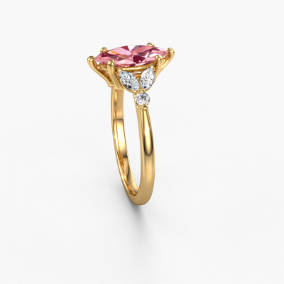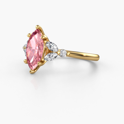 The ring shown above is called the Megan MRQ. We call this type of ring a pavé solitaire ring because it has one centre gemstone and a band that is also pave set with gemstones. This engagement ring is made in 14 Carat gold set with a 11x5.5 mm marquise pink lab grown diamond, and pave set lab-grown diamonds at the sides. Each piece of jewellery is made with passion and love by one of our master goldsmiths.This fantasy gold pavé solitaire engagement ring has an exquisite marquise pink lab grown diamond centre stone. To further accentuate the centre stone, the band is set full with more lab-grown diamonds. Its open prong setting allows light to strike the pink lab grown diamond from various angles and this adds sparkle to your pink lab grown diamond ring. The photo shown above depicts the goldsmith's carefully handcrafted details of the ring. The high positioning of the centre stone is truly eye-catching. The perfect engagement ring for the crown jewel of your life![bestp1v_long]Have you found a specific engagement ring somewhere which you would like to give to your loved one? Please feel free to express your wishes to our jewel designers because we would be honoured to turn your design into a fantasy engagement ring. You can follow the development of your ring design because we use 3D drawings. This gives you a realistic preview of how your design will look. You can also preorder a dummy. A dummy is a plastic ring, which can be shaped according your ring design. You can try it on and check if its width and size are suitable for you. We will gladly send you a non-binding offer, based on a fair price/ quality ratio. It will amaze you, considering the quality of the ring and gemstones.To make it easier for you, we offer a 30 day return policy. Check our terms and conditions.