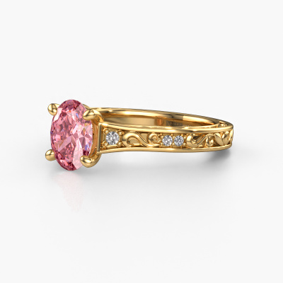 The ring shown above is called the Mallory ovl. We call this type of ring a pavé solitaire ring because it has one centre gemstone and a band that is also pave set with gemstones. This engagement ring is made in 14 Carat gold set with a 8x6 mm oval pink lab grown diamond, and pave set lab-grown diamonds at the sides. Each piece of jewellery is made with passion and love by one of our master goldsmiths.This traditional gold pavé solitaire engagement ring has an exquisite oval pink lab grown diamond centre stone. To further accentuate the centre stone, the band is set full with more lab-grown diamonds. Its open prong setting allows light to strike the pink lab grown diamond from various angles and this adds sparkle to your pink lab grown diamond ring. The photo shown above depicts the goldsmith's carefully handcrafted details of the ring. The high positioning of the centre stone is truly eye-catching. The perfect engagement ring for the crown jewel of your life!Are you on a budget? Please feel free to contact us, so we can go discuss your options. We offer our engagement rings at guaranteed best price, because we make them to order. You won't find such a price anywhere else!Our team adds new designs to our online collection daily. Our designers and goldsmiths work together in creating the best design. We strive to offer a diverse collection of jewels. Perhaps you have a specific jewel design in mind. One you came across somewhere. Please contact us for a free consultation. We will make you an offer, based on a fair price/ quality ratio, that will baffle you.To make it easier for you, we offer a 30 day return policy. Check our terms and conditions.