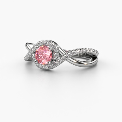 The ring shown above is called the Melody. We call this type of ring a pavé solitaire ring because it has one centre gemstone and a band that is also pave set with gemstones. This engagement ring is made in platinum set with a 5 mm round pink lab grown diamond, and pave set diamonds at the sides. Each piece of jewellery is unique in every way! Simply customize to your likingThis classic platinum pavé solitaire engagement ring has an exquisite round pink lab grown diamond centre stone. To further accentuate the centre stone, the band is set full with more diamonds. Its open prong setting allows light to strike the pink lab grown diamond from various angles and this adds sparkle to your pink lab grown diamond ring. The photo shown above depicts the goldsmith's carefully handcrafted details of the ring. The high positioning of the centre stone is truly eye-catching. The perfect engagement ring for the crown jewel of your life!Because we design and deliver our own rings, we can offer you a engagement ring at a price you won't find anywhere else. A ring is made to order, which helps prevent excess supplies, so we can make you a great price offer. We understand it feels risky, buying your engagement ring online, but we will gladly assist in the designing process, taking your budget into consideration.Do you have a specific ring in mind? One you came across somewhere. Please feel free to tell us your wishes and we will turn your design into a unique engagement ring. You can follow the development of your ring design because we use 3D drawings. This gives you a realistic preview of your design. We will gladly send you a non-binding offer, based on a fair price/ quality ratio. It will amaze you.To make it easier for you, we offer a 30 day return policy. Check our terms and conditions.