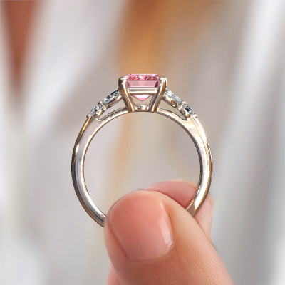 This platinum ring is called Megan EME and is set with 8x6 mm pink lab grown diamond. What is it that makes your relationship unique? What is it about her that makes you want to bend down on one knee? The unique bond between the two of you is emphasized by an equally unique ring. A one of a kind graceful pavé solitaire engagement ring made especially for her. That is why this contemporary ring fits her like a glove. Each specific detail of this graceful platinum pink lab grown diamond set engagement ring is hand-picked, crafted and polished by our expert goldsmith. The result is an exquisite ring, unique and perfectly crafted to perfection. That is what our expert Goldsmiths strive for. This jewel is created to add sparkle to your finger, each jewel is lovingly made by hand by our goldsmiths.After receiving your order, our goldsmiths will passionately start the creative process of making your engagement ring in our own studio. Because we don't have a big stockpile, these costs will not be passed on to you. Our pricing is proof of that! We offer top quality jewels at lowest price, guaranteed.Our team adds new designs to our online collection daily. Our designers and goldsmiths work together in creating the best design. We strive to offer a diverse collection of jewels. Perhaps you have a specific jewel design in mind. One you came across somewhere. Please contact us for a free consultation. We will make you an offer, based on a fair price/ quality ratio, that will baffle you.To make it easier for you, we offer a 30 day return policy. Check our terms and conditions.