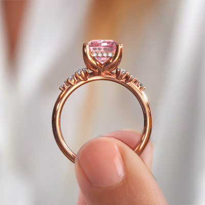 This 14 Carat rose gold ring is called Emma RAD and is set with 9x7 mm pink lab grown diamond. What is it that makes your relationship unique? What is it about her that makes you want to bend down on one knee? The unique bond between the two of you is emphasized by an equally unique ring. A one of a kind stylish pavé solitaire engagement ring made especially for her. That is why this exclusive ring fits her like a glove. Each specific detail of this stylish rose gold pink lab grown diamond set engagement ring is hand-picked, crafted and polished by our expert goldsmith. The result is an exquisite ring, unique and perfectly crafted to perfection. That is what our expert Goldsmiths strive for. This jewel is made by a team of passionate goldsmiths and jewel designers. This will make your crown jewel truly eye-catching.Because we design and deliver our own rings, we can offer you a engagement ring at a price you won't find anywhere else. A ring is made to order, which helps prevent excess supplies, so we can make you a great price offer. We understand it feels risky, buying your engagement ring online, but we will gladly assist in the designing process, taking your budget into consideration.Our designers and goldsmiths work together each day, creating new jewels. Perhaps you have found a nice exclusive engagement ring somewhere, which can be used to customize your unique ring. Please feel free to contact us. We will make you an offer, based on a fair price/ quality ratio, which will amaze you.To make it easier for you, we offer a 30 day return policy. Check our terms and conditions.