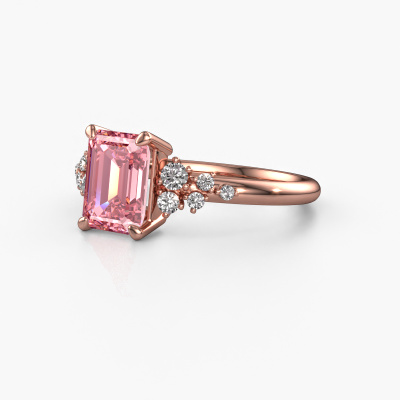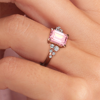 This 14 Carat rose gold ring is called Royce EME and is set with 8x6 mm pink lab grown diamond. What is it that makes your relationship unique? What is it about her that makes you want to bend down on one knee? The unique bond between the two of you