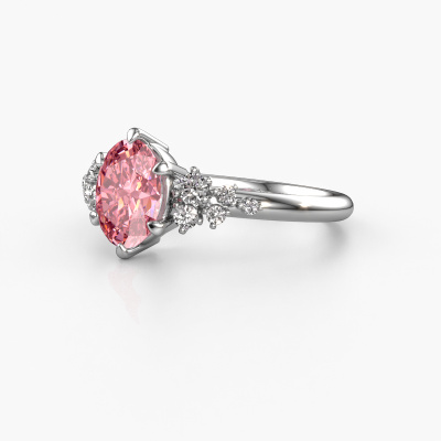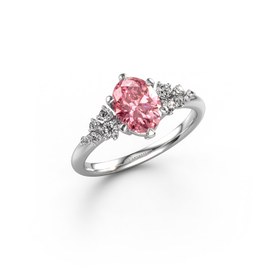 The ring shown above is called the Royce OVL. We call this type of ring a pavé solitaire ring because it has one centre gemstone and a band that is also pave set with gemstones. This engagement ring is made in 14 Carat white gold set with a 8x6 mm oval pink lab grown diamond, and pave set lab-grown diamonds at the sides. Each piece of jewellery is made with passion and love by one of our master goldsmiths.This fantasy white gold pavé solitaire engagement ring has an exquisite oval pink lab grown diamond centre stone. To further accentuate the centre stone, the band is set full with more lab-grown diamonds. Its open prong setting allows light to strike the pink lab grown diamond from various angles and this adds sparkle to your pink lab grown diamond ring. The photo shown above depicts the goldsmith's carefully handcrafted details of the ring. The high positioning of the centre stone is truly eye-catching. The perfect engagement ring for the crown jewel of your life!After receiving your order, our goldsmiths will passionately start the creative process of making your engagement ring in our own studio. Because we don't have a big stockpile, these costs will not be passed on to you. Our pricing is proof of that! We offer top quality jewels at lowest price, guaranteed.Have you found a specific engagement ring somewhere which you would like to give to your loved one? Please feel free to express your wishes to our jewel designers because we would be honoured to turn your design into a fantasy engagement ring. You can follow the development of your ring design because we use 3D drawings. This gives you a realistic preview of how your design will look. You can also preorder a dummy. A dummy is a plastic ring, which can be shaped according your ring design. You can try it on and check if its width and size are suitable for you. We will gladly send you a non-binding offer, based on a fair price/ quality ratio. It will amaze you, considering the quality of the ring and gemstones.To make it easier for you, we offer a 30 day return policy. Check our terms and conditions.