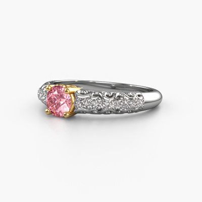 This 14 Carat white gold ring is called Mellie and is set with 5 mm pink lab grown diamond. What is it that makes your relationship unique? What is it about her that makes you want to bend down on one knee? The unique bond between the two of you is emphasized by an equally unique ring. A one of a kind filigree pavé solitaire engagement ring made especially for her. That is why this vintage ring fits her like a glove. Each specific detail of this filigree white gold pink lab grown diamond set engagement ring is hand-picked, crafted and polished by our expert goldsmith. The result is an exquisite ring, unique and perfectly crafted to perfection. That is what our expert Goldsmiths strive for. This jewel is made by a team of passionate goldsmiths and jewel designers. This will make your crown jewel truly eye-catching.Are you on a budget? Please feel free to contact us, so we can go discuss your options. We offer our engagement rings at guaranteed best price, because we make them to order. You won't find such a price anywhere else!Have you found a specific engagement ring somewhere which you would like to give to your loved one? Please feel free to express your wishes to our jewel designers because we would be honoured to turn your design into a vintage engagement ring. You can follow the development of your ring design because we use 3D drawings. This gives you a realistic preview of how your design will look. You can also preorder a dummy. A dummy is a plastic ring, which can be shaped according your ring design. You can try it on and check if its width and size are suitable for you. We will gladly send you a non-binding offer, based on a fair price/ quality ratio. It will amaze you, considering the quality of the ring and gemstones.To make it easier for you, we offer a 30 day return policy. Check our terms and conditions.