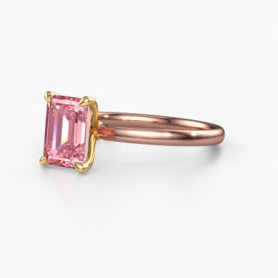 The ring shown above is called the Crystal EME 1, we call this a solitaire ring because it contains a single gemstone. The engagement ring is made in 14 Carat rose gold and has a emerald cut pink lab grown diamond of 8x6 mm. The cool thing about our configurator is that you can compile your own piece of jewellery, into a completely personalized one. This solitaire ring is crafted in the precious metals rose gold with gold, but of course you are free to pick your own colours. Each piece of jewellery is made with passion and love by one of our master goldsmiths.The solitaire ring is a special type of engagement ring. Its open prong setting allows light to strike the gemstone from various angles. This classic engagement ring is a stunning eye-catcher because of the high positioning of the gemstone. In order for you to commemorate your proposal with a unique ring, we carefully adorn this solitaire ring by hand. The love of your life deserves nothing but the best. After receiving your order, our goldsmiths will passionately start the creative process of making your engagement ring in our own studio. Because we don't have a big stockpile, these costs will not be passed on to you. Our pricing is proof of that! We offer top quality jewels at lowest price, guaranteed.Our designers and goldsmiths work together each day, creating new jewels. Perhaps you have found a nice classic engagement ring somewhere, which can be used to customize your unique ring. Please feel free to contact us. We will make you an offer, based on a fair price/ quality ratio, which will amaze you.To make it easier for you, we offer a 30 day return policy. Check our terms and conditions.