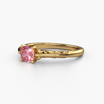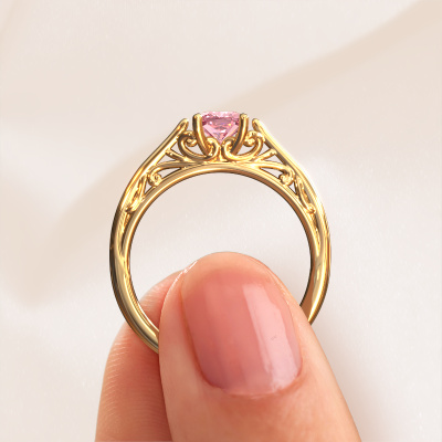 This 14 Carat gold ring is called Shannon cus and is set with 5 mm pink lab grown diamond. What is it that makes your relationship unique? What is it about her that makes you want to bend down on one knee? The unique bond between the two of you is emphasized by an equally unique ring. A one of a kind ajour solitaire engagement ring made especially for her. That is why this Celtic ring fits her like a glove. Each specific detail of this ajour gold pink lab grown diamond set engagement ring is hand-picked, crafted and polished by our expert goldsmith. The result is an exquisite ring, unique and perfectly crafted to perfection. That is what our expert Goldsmiths strive for. This jewel is made just for you, with attention to detail and design.By using our modern techniques, we can design and customize the finest quality jewels with the utmost care for you. Our engagement rings are always priced 30 percent lower than other jewellers. We make engagement rings to order so we don't have to maintain a large stock. If you have a certain budget, we are more than happy to advice you accordingly.Our team adds new designs to our online collection daily. Our designers and goldsmiths work together in creating the best design. We strive to offer a diverse collection of jewels. Perhaps you have a specific jewel design in mind. One you came across somewhere. Please contact us for a free consultation. We will make you an offer, based on a fair price/ quality ratio, that will baffle you.To make it easier for you, we offer a 30 day return policy. Check our terms and conditions.