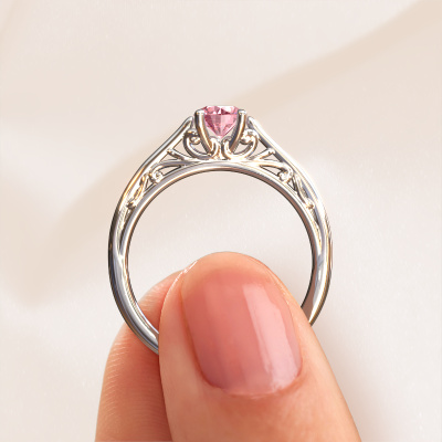 This platinum ring is called Shannon rnd and is set with pink lab grown diamond. How would you describe the style of the love of your life? Does she have a unique sense of style? This stunning ajour platinum engagement ring can be custom-made to your own or her liking. Our pink lab grown diamonds gemstones have been carefully selected because we believe your fantasy engagement ring must be adorned with nothing but the most beautiful gemstone. Don't you agree? This jewel is made with passion and love by one of our master goldsmiths.By using a combination of the latest modern techniques, combined with ancient crafting, we can make all our engagement rings in our own studio. Each jewel is made to order. This is advantageous because we can offer you a price you won't find anywhere else.Do you have a specific ring in mind? One you came across somewhere. Please feel free to tell us your wishes and we will turn your design into a unique engagement ring. You can follow the development of your ring design because we use 3D drawings. This gives you a realistic preview of your design. We will gladly send you a non-binding offer, based on a fair price/ quality ratio. It will amaze you.To make it easier for you, we offer a 30 day return policy. Check our terms and conditions.