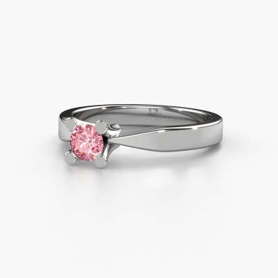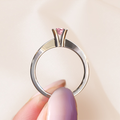 In your eyes, no one else compares to her. She is one in a million, unlike anyone else and pure? These qualities are emphasized perfectly by our traditional platinum solitaire pink lab grown diamond ring. This pink lab grown diamond is carefully selected by our keen artisan goldsmiths. It equals the unique qualities of the love of your life. There is no better way to memorialize your proposal than this symbol of true love. The ring shown above is called the Ichelle 1, we call this a solitaire ring because it contains a single gemstone. The engagement ring is made in platinum and has a round pink lab grown diamond of 4.2 mm. Each piece of jewellery is made with passion and love by one of our master goldsmiths.