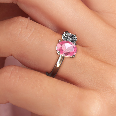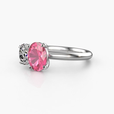 This platinum ring is called Toi et Moi OVL-OVL and is set with pink sapphire. How would you describe the style of the love of your life? Does she have a unique sense of style? This stunning sublime platinum engagement ring can be custom-made to your own or her liking. Our pink sapphire gemstones have been carefully selected because we believe your modern engagement ring must be adorned with nothing but the most beautiful gemstone. Don't you agree? This jewel is made by a team of passionate goldsmiths and jewel designers. This will make your crown jewel truly eye-catching.After receiving your order, our goldsmiths will start the creative process of making your Toi et Moi OVL-OVL engagement ring. We don't keep stock. This is advantageous because these costs will not be passed on to you. Therefore, we can offer jewellery at exceptionally low prices.Different styles of new rings are made daily by our team. Perhaps you have found a 2 stone engagement ring somewhere. One you would like to give to your loved one. Please feel free to share your thoughts and design with our jewel designers. We would love to turn your design into a modern engagement ring. You can follow the development of your ring design because we use very detailed 3D drawings. On top of that, you can order a dummy of the design. A dummy is a plastic ring, which can be shaped according your ring design. You can try it on and check if the engagement ring is up to standard. We will gladly send you a non-binding offer, based on a fair price/ quality ratio. The offer will baffle you, considering the quality of the ring and gemstones.To make it easier for you, we offer a 30 day return policy. Check our terms and conditions.