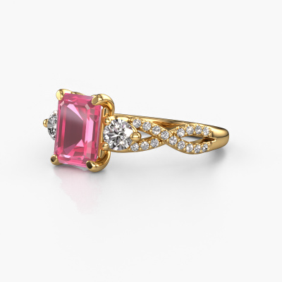 This 14 Carat gold ring is called Marilou EME and is set with pink sapphire. How would you describe the style of the love of your life? Does she have a unique sense of style? This stunning split band gold engagement ring can be custom-made to your own or her liking. Our pink sapphire gemstones have been carefully selected because we believe your luxury engagement ring must be adorned with nothing but the most beautiful gemstone. Don't you agree? This jewel is made to shine bright around your finger. Each jewel is hand made with love by our goldsmiths.After receiving your order, our goldsmiths will start the creative process of making your Marilou EME engagement ring. We don't keep stock. This is advantageous because these costs will not be passed on to you. Therefore, we can offer jewellery at exceptionally low prices.Do you have a specific ring in mind? One you came across somewhere. Please feel free to tell us your wishes and we will turn your design into a unique engagement ring. You can follow the development of your ring design because we use 3D drawings. This gives you a realistic preview of your design. We will gladly send you a non-binding offer, based on a fair price/ quality ratio. It will amaze you.To make it easier for you, we offer a 30 day return policy. Check our terms and conditions.