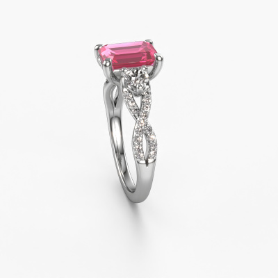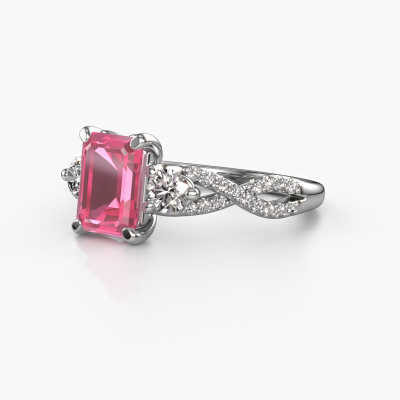 This platinum ring is called Marilou EME and is set with pink sapphire. How would you describe the style of the love of your life? Does she have a unique sense of style? This stunning split band platinum engagement ring can be custom-made to your own or her liking. Our pink sapphire gemstones have been carefully selected because we believe your luxury engagement ring must be adorned with nothing but the most beautiful gemstone. Don't you agree? This jewel is made to shine bright around your finger. Each jewel is hand made with love by our goldsmiths.After receiving your order, our goldsmiths will start the creative process of making your Marilou EME engagement ring. We don't keep stock. This is advantageous because these costs will not be passed on to you. Therefore, we can offer jewellery at exceptionally low prices.Do you have a specific ring in mind? One you came across somewhere. Please feel free to tell us your wishes and we will turn your design into a unique engagement ring. You can follow the development of your ring design because we use 3D drawings. This gives you a realistic preview of your design. We will gladly send you a non-binding offer, based on a fair price/ quality ratio. It will amaze you.To make it easier for you, we offer a 30 day return policy. Check our terms and conditions.