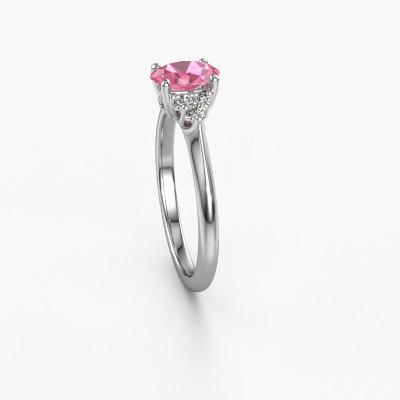 This platinum ring is called Felipa OVL and is set with pink sapphire. How would you describe the style of the love of your life? Does she have a unique sense of style? This stunning graceful platinum engagement ring can be custom-made to your own or her liking. Our pink sapphire gemstones have been carefully selected because we believe your traditional engagement ring must be adorned with nothing but the most beautiful gemstone. Don't you agree? This jewel is made just for you by our master goldsmiths in our own studio.By using our modern techniques, we can design and customize the finest quality jewels with the utmost care for you. Our engagement rings are always priced 30 percent lower than other jewellers. We make engagement rings to order so we don't have to maintain a large stock. If you have a certain budget, we are more than happy to advice you accordingly.Have you found a specific engagement ring somewhere which you would like to give to your loved one? Please feel free to express your wishes to our jewel designers because we would be honoured to turn your design into a traditional engagement ring. You can follow the development of your ring design because we use 3D drawings. This gives you a realistic preview of how your design will look. You can also preorder a dummy. A dummy is a plastic ring, which can be shaped according your ring design. You can try it on and check if its width and size are suitable for you. We will gladly send you a non-binding offer, based on a fair price/ quality ratio. It will amaze you, considering the quality of the ring and gemstones.To make it easier for you, we offer a 30 day return policy. Check our terms and conditions.