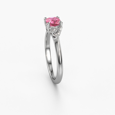 This platinum ring is called Felipa CUS and is set with pink sapphire. How would you describe the style of the love of your life? Does she have a unique sense of style? This stunning graceful platinum engagement ring can be custom-made to your own or her liking. Our pink sapphire gemstones have been carefully selected because we believe your vintage engagement ring must be adorned with nothing but the most beautiful gemstone. Don't you agree? This jewel is made just for you by our master goldsmiths in our own studio.By using our modern techniques, we can design and customize the finest quality jewels with the utmost care for you. Our engagement rings are always priced 30 percent lower than other jewellers. We make engagement rings to order so we don't have to maintain a large stock. If you have a certain budget, we are more than happy to advice you accordingly.Have you found a specific engagement ring somewhere which you would like to give to your loved one? Please feel free to express your wishes to our jewel designers because we would be honoured to turn your design into a vintage engagement ring. You can follow the development of your ring design because we use 3D drawings. This gives you a realistic preview of how your design will look. You can also preorder a dummy. A dummy is a plastic ring, which can be shaped according your ring design. You can try it on and check if its width and size are suitable for you. We will gladly send you a non-binding offer, based on a fair price/ quality ratio. It will amaze you, considering the quality of the ring and gemstones.To make it easier for you, we offer a 30 day return policy. Check our terms and conditions.