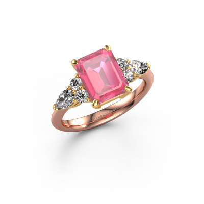 This 14 Carat rose gold ring is called Melani EME and is set with pink sapphire. How would you describe the style of the love of your life? Does she have a unique sense of style? This stunning sublime rose gold promise ring can be custom-made to your own or her liking. Our pink sapphire gemstones have been carefully selected because we believe your contemporary promise ring must be adorned with nothing but the most beautiful gemstone. Don't you agree? This jewel is made just for you, with attention to detail and design.Are you on a budget? Please feel free to contact us, so we can go discuss your options. We offer our promise ring at guaranteed best price, because we make them to order. You won't find such a price anywhere else!Do you have a specific ring in mind? One you came across somewhere. Please feel free to tell us your wishes and we will turn your design into a unique promise ring. You can follow the development of your ring design because we use 3D drawings. This gives you a realistic preview of your design. We will gladly send you a non-binding offer, based on a fair price/ quality ratio. It will amaze you.To make it easier for you, we offer a 30 day return policy. Check our terms and conditions.