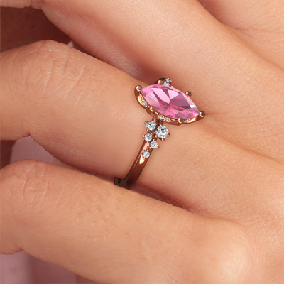 This 14 Carat rose gold ring is called Emma MRQ and is set with pink sapphire. How would you describe the style of the love of your life? Does she have a unique sense of style? This stunning special rose gold engagement ring can be custom-made to
