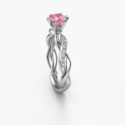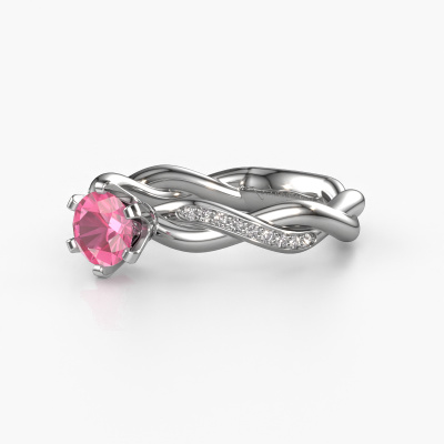 In your eyes, no one else compares to her. She is one in a million, unlike anyone else and pure? These qualities are emphasized perfectly by our fantasy white gold solitaire pink sapphire ring. This pink sapphire is carefully selected by our keen artisan goldsmiths. It equals the unique qualities of the love of your life. There is no better way to memorialize your proposal than this symbol of true love. The ring shown above is called the Page, we call this a solitaire ring because it contains a single gemstone. The engagement ring is made in 14 Carat white gold and has a round pink sapphire of 5.4 mm. Each piece of jewellery is made with passion and love by one of our master goldsmiths.Are you on a budget? Please feel free to contact us, so we can go discuss your options. We offer our engagement rings at guaranteed best price, because we make them to order. You won't find such a price anywhere else!Do you have a specific ring in mind? One you came across somewhere. Please feel free to tell us your wishes and we will turn your design into a unique engagement ring. You can follow the development of your ring design because we use 3D drawings. This gives you a realistic preview of your design. We will gladly send you a non-binding offer, based on a fair price/ quality ratio. It will amaze you.To make it easier for you, we offer a 30 day return policy. Check our terms and conditions.