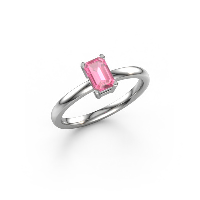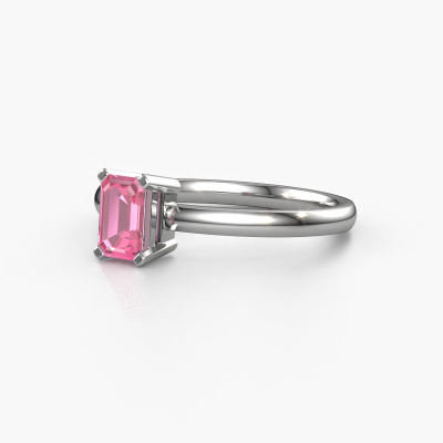 The ring shown above is called the Denita 1 EME, we call this a solitaire ring because it contains a single gemstone. The engagement ring is made in platinum and has a emerald cut pink sapphire of 6x4 mm. The cool thing about our configurator is that you can compile your own piece of jewellery, into a completely personalized one. This solitaire ring is crafted in the precious metals platinum with platinum, but of course you are free to pick your own colours. Each piece of jewellery is made by a team of passionate goldsmiths and jewel designers. This will make your crown jewel truly eye-catching.The solitaire ring is a special type of engagement ring. Its open prong setting allows light to strike the gemstone from various angles. This contemporary engagement ring is a stunning eye-catcher because of the high positioning of the gemstone. In order for you to commemorate your proposal with a unique ring, we carefully adorn this solitaire ring by hand. The love of your life deserves nothing but the best. By using a combination of the latest modern techniques, combined with ancient crafting, we can make all our engagement rings in our own studio. Each jewel is made to order. This is advantageous because we can offer you a price you won't find anywhere else.Our team adds new designs to our online collection daily. Our designers and goldsmiths work together in creating the best design. We strive to offer a diverse collection of jewels. Perhaps you have a specific jewel design in mind. One you came across somewhere. Please contact us for a free consultation. We will make you an offer, based on a fair price/ quality ratio, that will baffle you.To make it easier for you, we offer a 30 day return policy. Check our terms and conditions.