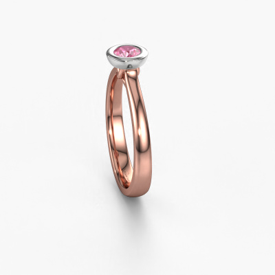 The ring shown above is called the Kaylee, we call this a solitaire ring because it contains a single gemstone. The Engagement ring is made in 14 Carat rose gold and has a round pink sapphire of 4 mm. The cool thing about our configurator is that you can compile your own piece of jewellery, into a completely personalized one. This solitaire ring is crafted in the precious metals rose gold with white gold, but of course you are free to pick your own colours. Each piece of jewellery is made by a team of passionate goldsmiths and jewel designers. This will make your crown jewel truly eye-catching.The solitaire ring is a special type of Engagement ring. Its open prong setting allows light to strike the gemstone from various angles. This fashionable Engagement ring is a stunning eye-catcher because of the high positioning of the gemstone. In order for you to commemorate your proposal with a unique ring, we carefully adorn this solitaire ring by hand. The love of your life deserves nothing but the best. Because we design and deliver our own rings, we can offer you a Engagement ring at a price you won't find anywhere else. A ring is made to order, which helps prevent excess supplies, so we can make you a great price offer. We understand it feels risky, buying your Engagement ring online, but we will gladly assist in the designing process, taking your budget into consideration.Different styles of new rings are made daily by our team. Perhaps you have found a solitaire Engagement ring somewhere. One you would like to give to your loved one. Please feel free to share your thoughts and design with our jewel designers. We would love to turn your design into a fashionable Engagement ring. You can follow the development of your ring design because we use very detailed 3D drawings. On top of that, you can order a dummy of the design. A dummy is a plastic ring, which can be shaped according your ring design. You can try it on and check if the Engagement ring is up to standard. We will gladly send you a non-binding offer, based on a fair price/ quality ratio. The offer will baffle you, considering the quality of the ring and gemstones.To make it easier for you, we offer a 30 day return policy. Check our terms and conditions.