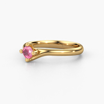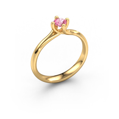 In your eyes, no one else compares to her. She is one in a million, unlike anyone else and pure? These qualities are emphasized perfectly by our modern gold solitaire pink sapphire ring. This pink sapphire is carefully selected by our keen artisan goldsmiths. It equals the unique qualities of the love of your life. There is no better way to memorialize your proposal than this symbol of true love. The ring shown above is called the Dewi Round, we call this a solitaire ring because it contains a single gemstone. The engagement ring is made in 14 Carat gold and has a round pink sapphire of 4 mm. Each piece of jewellery is made to shine bright around your finger. Each jewel is hand made with love by our goldsmiths.After receiving your order, our goldsmiths will passionately start the creative process of making your engagement ring in our own studio. Because we don't have a big stockpile, these costs will not be passed on to you. Our pricing is proof of that! We offer top quality jewels at lowest price, guaranteed.Different styles of new rings are made daily by our team. Perhaps you have found a solitaire engagement ring somewhere. One you would like to give to your loved one. Please feel free to share your thoughts and design with our jewel designers. We would love to turn your design into a modern engagement ring. You can follow the development of your ring design because we use very detailed 3D drawings. On top of that, you can order a dummy of the design. A dummy is a plastic ring, which can be shaped according your ring design. You can try it on and check if the engagement ring is up to standard. We will gladly send you a non-binding offer, based on a fair price/ quality ratio. The offer will baffle you, considering the quality of the ring and gemstones.To make it easier for you, we offer a 30 day return policy. Check our terms and conditions.