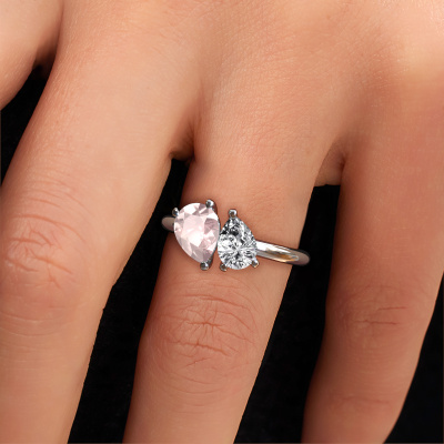 This platinum ring is called Toi et Moi PER-PER and is set with morganite champagne. Are you in the market for a unique platinum engagement ring with a trendy appearance? Then this ring is perfect for you. Simply customize to your or her liking. This fashionable fashionable engagement ring is set with exquisite morganite champagne. It has been carefully selected because your engagement ring must be adorned with nothing but the most beautiful gemstone. Our expert goldsmith will create your ring in our own studio where the morganite champagne will be set with great care. The ring will then be polished to perfection to give it that extra sparkle. The perfect ring for your significant other! After receiving your order, our goldsmiths will passionately start the creative process of making your engagement ring in our own studio. Because we don't have a big stockpile, these costs will not be passed on to you. Our pricing is proof of that! We offer top quality jewels at lowest price, guaranteed.Our designers and goldsmiths work together each day, creating new jewels. Perhaps you have found a nice fashionable engagement ring somewhere, which can be used to customize your unique ring. Please feel free to contact us. We will make you an offer, based on a fair price/ quality ratio, which will amaze you.To make it easier for you, we offer a 30 day return policy. Check our terms and conditions.