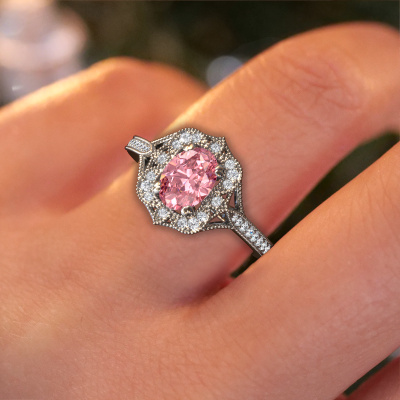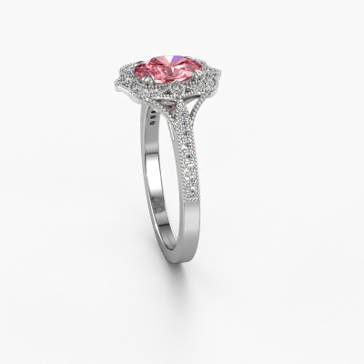 This platinum ring is called Loni and is set with 7,5x5,5 mm pink lab grown diamond. This filigree platinum engagement ring is a true work of art! A beautifully adorned design of intricate wires. With dedication, patience and the utmost precision, our expert goldsmith will design a ring just for you. The adornment of small wiring is crafted to perfection by hand. It's a lengthy process which includes welding, crafting and polishing until our Goldsmiths are completely satisfied with the result: a perfect eye-catching ring that makes her shine with delight. Therefore the vintage filigree engagement ring is an extraordinary gift to bestow upon the love of your life. A handmade one-of-a-kind personalized ring, to be given to that special someone on that special moment when you pop the question. Isn't that wonderful? This piece of jewellery is made with passion and love by one of our master goldsmiths.Because we design and deliver our own rings, we can offer you a engagement ring at a price you won't find anywhere else. A ring is made to order, which helps prevent excess supplies, so we can make you a great price offer. We understand it feels risky, buying your engagement ring online, but we will gladly assist in the designing process, taking your budget into consideration.Our team adds new designs to our online collection daily. Our designers and goldsmiths work together in creating the best design. We strive to offer a diverse collection of jewels. Perhaps you have a specific jewel design in mind. One you came across somewhere. Please contact us for a free consultation. We will make you an offer, based on a fair price/ quality ratio, that will baffle you.To make it easier for you, we offer a 30 day return policy. Check our terms and conditions.