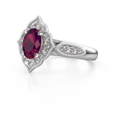 This platinum ring is called Rosan and is set with rhodolite. An extraordinary platinum vintage ring. One that will surely make the love of your life shine like a diamond! That is what we hope to achieve. This vintage engagement ring is set with exquisite rhodolite. Whichever gemstone you choose from our selection, is up to you. The gemstone is selected with great care because we believe your engagement ring must be adorned with nothing but the most beautiful gemstone. Wouldn't you agree? Our expert goldsmith will design your ring in our own artisan studio, where the rhodolite will be set with great precision. The ring will then be polished till it is absolutely perfect. Nothing but the best for the love of your life! This jewel is made just for you by our master goldsmiths in our own studio.After receiving your order, our goldsmiths will passionately start the creative process of making your engagement ring in our own studio. Because we don't have a big stockpile, these costs will not be passed on to you. Our pricing is proof of that! We offer top quality jewels at lowest price, guaranteed.Our team adds new designs to our online collection daily. Our designers and goldsmiths work together in creating the best design. We strive to offer a diverse collection of jewels. Perhaps you have a specific jewel design in mind. One you came across somewhere. Please contact us for a free consultation. We will make you an offer, based on a fair price/ quality ratio, that will baffle you.To make it easier for you, we offer a 30 day return policy. Check our terms and conditions.
