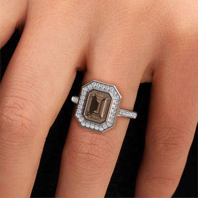 This platinum ring is called Noud 2 EME and is set with 2.104 crt brown diamond. Does your girlfriend fancy exclusive jewellery? Or would you like to show her that she deserves the finest jewellery? This platinum ring is pure craftsmanship, love and passion combined with the latest techniques coming together in perfect harmony. It requires a keen eye, patience and a skilful hand to mould this ring into perfection. Just the job for our expert goldsmith! The brown diamonds set gemstones gives this platinum ring an extra glamorous appearance. Customize the style of the pavé engagement ring to her liking with a wide variety of precious metals and gemstones which you select. That is how you create a unique ring for the most exclusive woman in your life! This jewel is created to add sparkle to your finger, each jewel is lovingly made by hand by our goldsmiths.After receiving your order, our goldsmiths will start the creative process of making your Noud 2 EME engagement ring. We don't keep stock. This is advantageous because these costs will not be passed on to you. Therefore, we can offer jewellery at exceptionally low prices.Have you found a specific engagement ring somewhere which you would like to give to your loved one? Please feel free to express your wishes to our jewel designers because we would be honoured to turn your design into a exclusive engagement ring. You can follow the development of your ring design because we use 3D drawings. This gives you a realistic preview of how your design will look. You can also preorder a dummy. A dummy is a plastic ring, which can be shaped according your ring design. You can try it on and check if its width and size are suitable for you. We will gladly send you a non-binding offer, based on a fair price/ quality ratio. It will amaze you, considering the quality of the ring and gemstones.To make it easier for you, we offer a 30 day return policy. Check our terms and conditions.