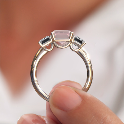 This platinum ring is called Sandra and is set with 9x7 mm morganite champagne. Does your girlfriend fancy exclusive jewellery? Or would you like to show her that she deserves the finest jewellery? This platinum ring is pure craftsmanship, love and passion combined with the latest techniques coming together in perfect harmony. It requires a keen eye, patience and a skilful hand to mould this ring into perfection. Just the job for our expert goldsmith! The morganite champagne set gemstones gives this platinum ring an extra glamorous appearance. Customize the style of the special engagement ring to her liking with a wide variety of precious metals and gemstones which you select. That is how you create a unique ring for the most exclusive woman in your life! This jewel is made just for you by our master goldsmiths in our own studio.Because we design and deliver our own rings, we can offer you a engagement ring at a price you won't find anywhere else. A ring is made to order, which helps prevent excess supplies, so we can make you a great price offer. We understand it feels risky, buying your engagement ring online, but we will gladly assist in the designing process, taking your budget into consideration.Different styles of new rings are made daily by our team. Perhaps you have found a 3-stone engagement ring somewhere. One you would like to give to your loved one. Please feel free to share your thoughts and design with our jewel designers. We would love to turn your design into a exclusive engagement ring. You can follow the development of your ring design because we use very detailed 3D drawings. On top of that, you can order a dummy of the design. A dummy is a plastic ring, which can be shaped according your ring design. You can try it on and check if the engagement ring is up to standard. We will gladly send you a non-binding offer, based on a fair price/ quality ratio. The offer will baffle you, considering the quality of the ring and gemstones.To make it easier for you, we offer a 30 day return policy. Check our terms and conditions.