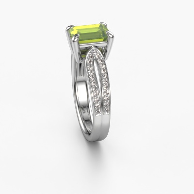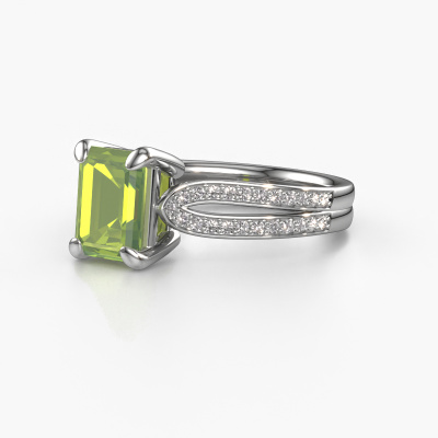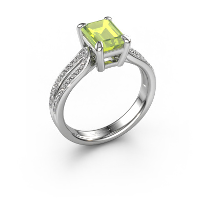 This platinum ring is called Antonia eme 2 and is set with 8x6 mm peridot. Does your girlfriend fancy exclusive jewellery? Or would you like to show her that she deserves the finest jewellery? This platinum ring is pure craftsmanship, love and passion combined with the latest techniques coming together in perfect harmony. It requires a keen eye, patience and a skilful hand to mould this ring into perfection. Just the job for our expert goldsmith! The peridot set gemstones gives this platinum ring an extra glamorous appearance. Customize the style of the split band engagement ring to her liking with a wide variety of precious metals and gemstones which you select. That is how you create a unique ring for the most exclusive woman in your life! This jewel is made to shine bright around your finger. Each jewel is hand made with love by our goldsmiths.After receiving your order, our goldsmiths will start the creative process of making your Antonia eme 2 engagement ring. We don't keep stock. This is advantageous because these costs will not be passed on to you. Therefore, we can offer jewellery at exceptionally low prices.Do you have a specific ring in mind? One you came across somewhere. Please feel free to tell us your wishes and we will turn your design into a unique engagement ring. You can follow the development of your ring design because we use 3D drawings. This gives you a realistic preview of your design. We will gladly send you a non-binding offer, based on a fair price/ quality ratio. It will amaze you.To make it easier for you, we offer a 30 day return policy. Check our terms and conditions.