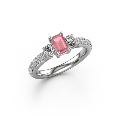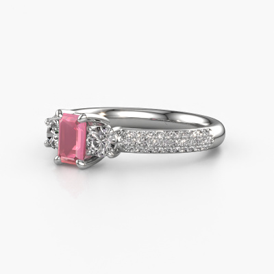 This platinum ring is called Marielle EME and is set with 6x4 mm tourmaline pink. Does your girlfriend fancy exclusive jewellery? Or would you like to show her that she deserves the finest jewellery? This platinum ring is pure craftsmanship, love and passion combined with the latest techniques coming together in perfect harmony. It requires a keen eye, patience and a skilful hand to mould this ring into perfection. Just the job for our expert goldsmith! The tourmaline pink set gemstones gives this platinum ring an extra glamorous appearance. Customize the style of the special engagement ring to her liking with a wide variety of precious metals and gemstones which you select. That is how you create a unique ring for the most exclusive woman in your life! This jewel is created to add sparkle to your finger, each jewel is lovingly made by hand by our goldsmiths.Because we design and deliver our own rings, we can offer you a engagement ring at a price you won't find anywhere else. A ring is made to order, which helps prevent excess supplies, so we can make you a great price offer. We understand it feels risky, buying your engagement ring online, but we will gladly assist in the designing process, taking your budget into consideration.Our team adds new designs to our online collection daily. Our designers and goldsmiths work together in creating the best design. We strive to offer a diverse collection of jewels. Perhaps you have a specific jewel design in mind. One you came across somewhere. Please contact us for a free consultation. We will make you an offer, based on a fair price/ quality ratio, that will baffle you.To make it easier for you, we offer a 30 day return policy. Check our terms and conditions.