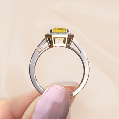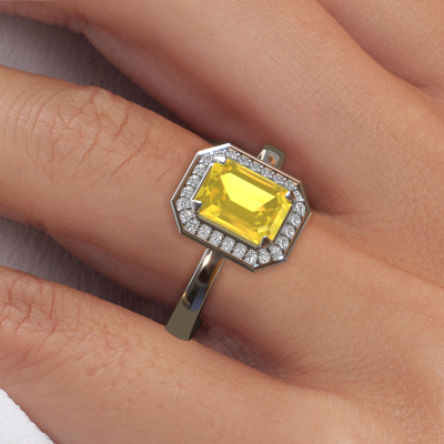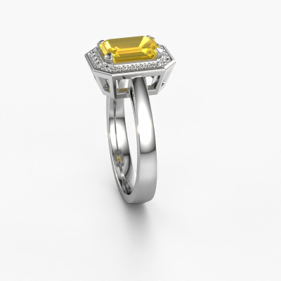 This platinum ring is called Dodie 1 eme and is set with 8x6 mm yellow sapphire. Does your girlfriend fancy exclusive jewellery? Or would you like to show her that she deserves the finest jewellery? This platinum ring is pure craftsmanship, love and passion combined with the latest techniques coming together in perfect harmony. It requires a keen eye, patience and a skilful hand to mould this ring into perfection. Just the job for our expert goldsmith! The yellow sapphire set gemstones gives this platinum ring an extra glamorous appearance. Customize the style of the special engagement ring to her liking with a wide variety of precious metals and gemstones which you select. That is how you create a unique ring for the most exclusive woman in your life! This jewel is made to shine bright around your finger. Each jewel is hand made with love by our goldsmiths.After receiving your order, our goldsmiths will start the creative process of making your Dodie 1 eme engagement ring. We don't keep stock. This is advantageous because these costs will not be passed on to you. Therefore, we can offer jewellery at exceptionally low prices.Our team adds new designs to our online collection daily. Our designers and goldsmiths work together in creating the best design. We strive to offer a diverse collection of jewels. Perhaps you have a specific jewel design in mind. One you came across somewhere. Please contact us for a free consultation. We will make you an offer, based on a fair price/ quality ratio, that will baffle you.To make it easier for you, we offer a 30 day return policy. Check our terms and conditions.