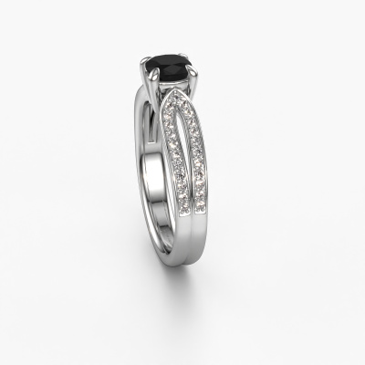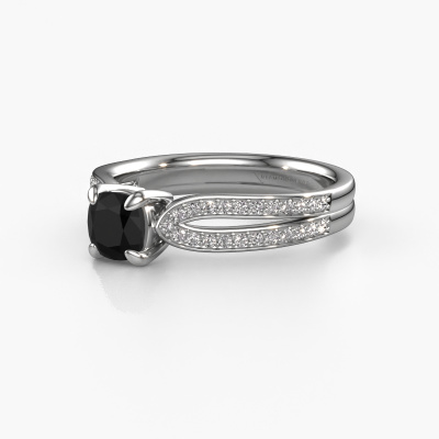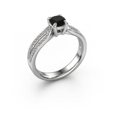 The ring shown above is called the Antonia cus 2. We call this type of ring a pavé solitaire ring because it has one centre gemstone and a band that is also pave set with gemstones. The platinum engagement ring is set with a cushion 0.70 crt black diamond centre stone and the band is pave set with lab grown diamond gemstones. Each jewel is made just for you by our master goldsmiths in our own studio.This fantasy platinum pavé solitaire engagement ring has an exquisite cushion black diamond centre stone. To further accentuate the centre stone, the band is fully set with more lab-grown diamonds. Its open prong setting allows light to strike the black diamond from various angles and this adds sparkle to your black diamond ring. The photo shown above depicts the goldsmith's carefully handcrafted details of the ring. The high positioning of the centre stone is truly eye-catching. The perfect engagement ring for the crown jewel of your life! By using our modern techniques, we can design and customize the finest quality jewels with the utmost care for you. Our engagement rings are always priced 30 percent lower than other jewellers. We make engagement rings to order so we don't have to maintain a large stock. If you have a certain budget, we are more than happy to advice you accordingly.Have you found a specific engagement ring somewhere which you would like to give to your loved one? Please feel free to express your wishes to our jewel designers because we would be honoured to turn your design into a fantasy engagement ring. You can follow the development of your ring design because we use 3D drawings. This gives you a realistic preview of how your design will look. You can also preorder a dummy. A dummy is a plastic ring, which can be shaped according your ring design. You can try it on and check if its width and size are suitable for you. We will gladly send you a non-binding offer, based on a fair price/ quality ratio. It will amaze you, considering the quality of the ring and gemstones.To make it easier for you, we offer a 30 day return policy. Check our terms and conditions.