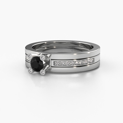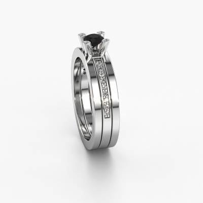 The ring shown above is called the Alisha. We call this type of ring a pavé solitaire ring because it has one centre gemstone and a band that is also pave set with gemstones. The platinum engagement ring is set with a round 0.30 crt black diamond centre stone and the band is pave set with diamond gemstones. Each jewel is unique in every way! Simply customize to your liking,This design platinum pavé solitaire engagement ring has an exquisite round black diamond centre stone. To further accentuate the centre stone, the band is fully set with more diamonds. Its open prong setting allows light to strike the black diamond from various angles and this adds sparkle to your black diamond ring. The photo shown above depicts the goldsmith's carefully handcrafted details of the ring. The high positioning of the centre stone is truly eye-catching. The perfect engagement ring for the crown jewel of your life! By using a combination of the latest modern techniques, combined with ancient crafting, we can make all our engagement rings in our own studio. Each jewel is made to order. This is advantageous because we can offer you a price you won't find anywhere else.Have you found a specific engagement ring somewhere which you would like to give to your loved one? Please feel free to express your wishes to our jewel designers because we would be honoured to turn your design into a design engagement ring. You can follow the development of your ring design because we use 3D drawings. This gives you a realistic preview of how your design will look. You can also preorder a dummy. A dummy is a plastic ring, which can be shaped according your ring design. You can try it on and check if its width and size are suitable for you. We will gladly send you a non-binding offer, based on a fair price/ quality ratio. It will amaze you, considering the quality of the ring and gemstones.To make it easier for you, we offer a 30 day return policy. Check our terms and conditions.