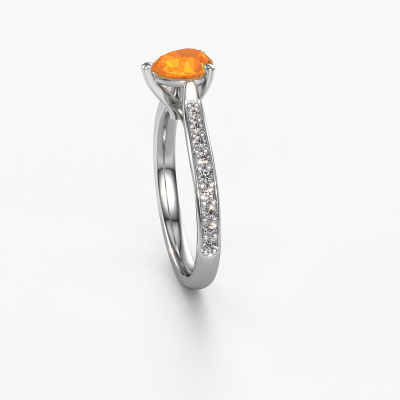 The ring shown above is called the Mignon per 2. We call this type of ring a pavé solitaire ring because it has one centre gemstone and a band that is also pave set with gemstones. The platinum engagement ring is set with a pear 6.5x4.5 mm citrin centre stone and the band is pave set with diamond gemstones. Each jewel is made just for you by our master goldsmiths in our own studio.This trendy platinum pavé solitaire engagement ring has an exquisite pear citrin centre stone. To further accentuate the centre stone, the band is fully set with more diamonds. Its open prong setting allows light to strike the citrin from various angles and this adds sparkle to your citrin ring. The photo shown above depicts the goldsmith's carefully handcrafted details of the ring. The high positioning of the centre stone is truly eye-catching. The perfect engagement ring for the crown jewel of your life! Are you on a budget? Please feel free to contact us, so we can go discuss your options. We offer our engagement rings at guaranteed best price, because we make them to order. You won't find such a price anywhere else!Our team adds new designs to our online collection daily. Our designers and goldsmiths work together in creating the best design. We strive to offer a diverse collection of jewels. Perhaps you have a specific jewel design in mind. One you came across somewhere. Please contact us for a free consultation. We will make you an offer, based on a fair price/ quality ratio, that will baffle you.To make it easier for you, we offer a 30 day return policy. Check our terms and conditions.