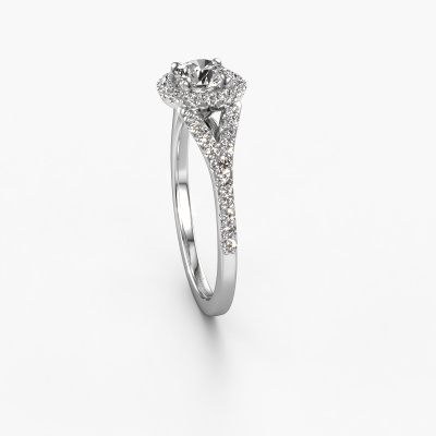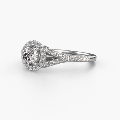 The ring shown above is called the Kimber RND. We call this type of ring a pavé solitaire ring because it has one centre gemstone and a band that is also pave set with gemstones. The platinum engagement ring is set with a round 0.50 crt diamond centre stone and the band is pave set with lab grown diamond gemstones. Each jewel is created to add sparkle to your finger, each jewel is lovingly made by hand by our goldsmiths.This classic platinum pavé solitaire engagement ring has an exquisite round diamond centre stone. To further accentuate the centre stone, the band is fully set with more lab-grown diamonds. Its open prong setting allows light to strike the diamond from various angles and this adds sparkle to your diamond ring. The photo shown above depicts the goldsmith's carefully handcrafted details of the ring. The high positioning of the centre stone is truly eye-catching. The perfect engagement ring for the crown jewel of your life! After receiving your order, our goldsmiths will passionately start the creative process of making your engagement ring in our own studio. Because we don't have a big stockpile, these costs will not be passed on to you. Our pricing is proof of that! We offer top quality jewels at lowest price, guaranteed.Our team adds new designs to our online collection daily. Our designers and goldsmiths work together in creating the best design. We strive to offer a diverse collection of jewels. Perhaps you have a specific jewel design in mind. One you came across somewhere. Please contact us for a free consultation. We will make you an offer, based on a fair price/ quality ratio, that will baffle you.To make it easier for you, we offer a 30 day return policy. Check our terms and conditions.