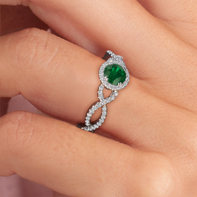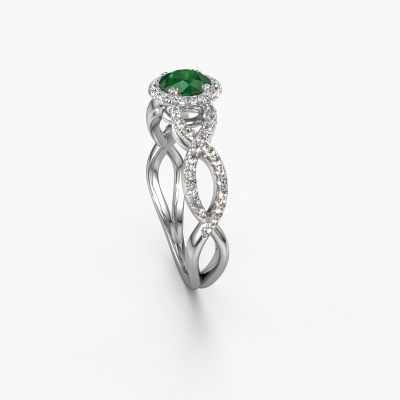 The ring shown above is called the Dionne rnd. We call this type of ring a pavé solitaire ring because it has one centre gemstone and a band that is also pave set with gemstones. The platinum engagement ring is set with a round 5 mm emerald centre stone and the band is pave set with diamond gemstones. Each jewel is made just for you by our master goldsmiths in our own studio.This classic platinum pavé solitaire engagement ring has an exquisite round emerald centre stone. To further accentuate the centre stone, the band is fully set with more diamonds. Its open prong setting allows light to strike the emerald from various angles and this adds sparkle to your emerald ring. The photo shown above depicts the goldsmith's carefully handcrafted details of the ring. The high positioning of the centre stone is truly eye-catching. The perfect engagement ring for the crown jewel of your life! Because we design and deliver our own rings, we can offer you a engagement ring at a price you won't find anywhere else. A ring is made to order, which helps prevent excess supplies, so we can make you a great price offer. We understand it feels risky, buying your engagement ring online, but we will gladly assist in the designing process, taking your budget into consideration.Do you have a specific ring in mind? One you came across somewhere. Please feel free to tell us your wishes and we will turn your design into a unique engagement ring. You can follow the development of your ring design because we use 3D drawings. This gives you a realistic preview of your design. We will gladly send you a non-binding offer, based on a fair price/ quality ratio. It will amaze you.To make it easier for you, we offer a 30 day return policy. Check our terms and conditions.