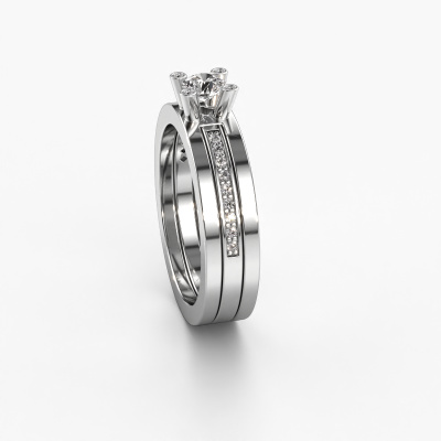 The ring shown above is called the Alisha. We call this type of ring a pavé solitaire ring because it has one centre gemstone and a band that is also pave set with gemstones. The platinum engagement ring is set with a round 0.25 crt lab grown diamond centre stone and the band is pave set with diamond gemstones. Each jewel is unique in every way! Simply customize to your liking,This design platinum pavé solitaire engagement ring has an exquisite round lab grown diamond centre stone. To further accentuate the centre stone, the band is fully set with more diamonds. Its open prong setting allows light to strike the lab grown diamond from various angles and this adds sparkle to your lab grown diamond ring. The photo shown above depicts the goldsmith's carefully handcrafted details of the ring. The high positioning of the centre stone is truly eye-catching. The perfect engagement ring for the crown jewel of your life! By using a combination of the latest modern techniques, combined with ancient crafting, we can make all our engagement rings in our own studio. Each jewel is made to order. This is advantageous because we can offer you a price you won't find anywhere else.Have you found a specific engagement ring somewhere which you would like to give to your loved one? Please feel free to express your wishes to our jewel designers because we would be honoured to turn your design into a design engagement ring. You can follow the development of your ring design because we use 3D drawings. This gives you a realistic preview of how your design will look. You can also preorder a dummy. A dummy is a plastic ring, which can be shaped according your ring design. You can try it on and check if its width and size are suitable for you. We will gladly send you a non-binding offer, based on a fair price/ quality ratio. It will amaze you, considering the quality of the ring and gemstones.To make it easier for you, we offer a 30 day return policy. Check our terms and conditions.