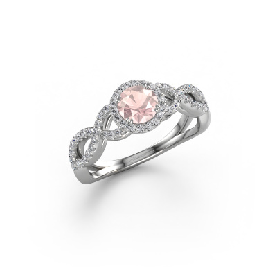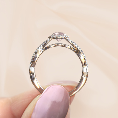 The ring shown above is called the Dionne rnd. We call this type of ring a pavé solitaire ring because it has one centre gemstone and a band that is also pave set with gemstones. The platinum engagement ring is set with a round 5 mm morganite champagne centre stone and the band is pave set with diamond gemstones. Each jewel is made just for you by our master goldsmiths in our own studio.This classic platinum pavé solitaire engagement ring has an exquisite round morganite champagne centre stone. To further accentuate the centre stone, the band is fully set with more diamonds. Its open prong setting allows light to strike the morganite champagne from various angles and this adds sparkle to your morganite champagne ring. The photo shown above depicts the goldsmith's carefully handcrafted details of the ring. The high positioning of the centre stone is truly eye-catching. The perfect engagement ring for the crown jewel of your life! Because we design and deliver our own rings, we can offer you a engagement ring at a price you won't find anywhere else. A ring is made to order, which helps prevent excess supplies, so we can make you a great price offer. We understand it feels risky, buying your engagement ring online, but we will gladly assist in the designing process, taking your budget into consideration.Do you have a specific ring in mind? One you came across somewhere. Please feel free to tell us your wishes and we will turn your design into a unique engagement ring. You can follow the development of your ring design because we use 3D drawings. This gives you a realistic preview of your design. We will gladly send you a non-binding offer, based on a fair price/ quality ratio. It will amaze you.To make it easier for you, we offer a 30 day return policy. Check our terms and conditions.