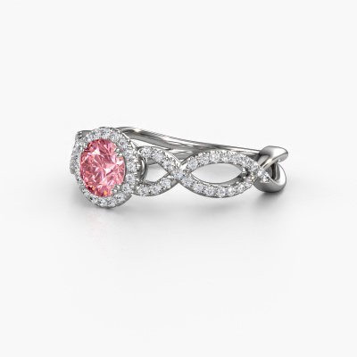 The ring shown above is called the Dionne rnd. We call this type of ring a pavé solitaire ring because it has one centre gemstone and a band that is also pave set with gemstones. The platinum engagement ring is set with a round 5 mm pink lab grown diamond centre stone and the band is pave set with diamond gemstones. Each jewel is made just for you by our master goldsmiths in our own studio.This classic platinum pavé solitaire engagement ring has an exquisite round pink lab grown diamond centre stone. To further accentuate the centre stone, the band is fully set with more diamonds. Its open prong setting allows light to strike the pink lab grown diamond from various angles and this adds sparkle to your pink lab grown diamond ring. The photo shown above depicts the goldsmith's carefully handcrafted details of the ring. The high positioning of the centre stone is truly eye-catching. The perfect engagement ring for the crown jewel of your life! Because we design and deliver our own rings, we can offer you a engagement ring at a price you won't find anywhere else. A ring is made to order, which helps prevent excess supplies, so we can make you a great price offer. We understand it feels risky, buying your engagement ring online, but we will gladly assist in the designing process, taking your budget into consideration.Do you have a specific ring in mind? One you came across somewhere. Please feel free to tell us your wishes and we will turn your design into a unique engagement ring. You can follow the development of your ring design because we use 3D drawings. This gives you a realistic preview of your design. We will gladly send you a non-binding offer, based on a fair price/ quality ratio. It will amaze you.To make it easier for you, we offer a 30 day return policy. Check our terms and conditions.