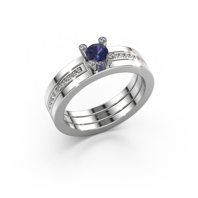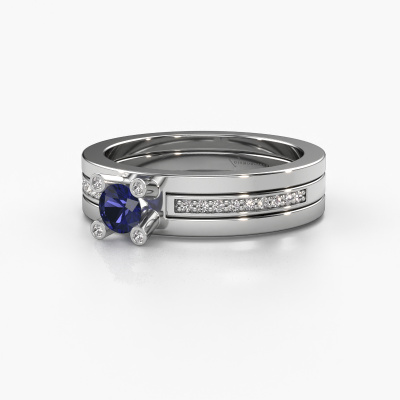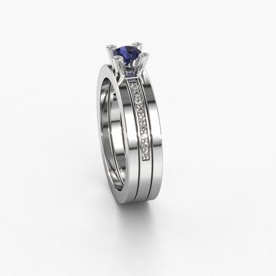 The ring shown above is called the Alisha. We call this type of ring a pavé solitaire ring because it has one centre gemstone and a band that is also pave set with gemstones. The platinum engagement ring is set with a round 4 mm sapphire centre stone and the band is pave set with diamond gemstones. Each jewel is unique in every way! Simply customize to your liking,This design platinum pavé solitaire engagement ring has an exquisite round sapphire centre stone. To further accentuate the centre stone, the band is fully set with more diamonds. Its open prong setting allows light to strike the sapphire from various angles and this adds sparkle to your sapphire ring. The photo shown above depicts the goldsmith's carefully handcrafted details of the ring. The high positioning of the centre stone is truly eye-catching. The perfect engagement ring for the crown jewel of your life! By using a combination of the latest modern techniques, combined with ancient crafting, we can make all our engagement rings in our own studio. Each jewel is made to order. This is advantageous because we can offer you a price you won't find anywhere else.Have you found a specific engagement ring somewhere which you would like to give to your loved one? Please feel free to express your wishes to our jewel designers because we would be honoured to turn your design into a design engagement ring. You can follow the development of your ring design because we use 3D drawings. This gives you a realistic preview of how your design will look. You can also preorder a dummy. A dummy is a plastic ring, which can be shaped according your ring design. You can try it on and check if its width and size are suitable for you. We will gladly send you a non-binding offer, based on a fair price/ quality ratio. It will amaze you, considering the quality of the ring and gemstones.To make it easier for you, we offer a 30 day return policy. Check our terms and conditions.
