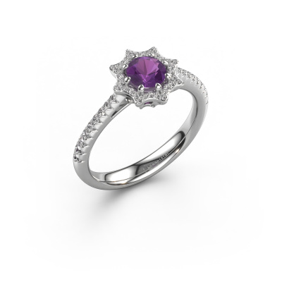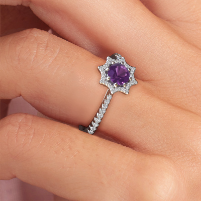 This platinum ring is called Zena and is set with amethyst. An extraordinary platinum vintage ring. One that will surely make the love of your life shine like a diamond! That is what we hope to achieve. This fantasy engagement ring is set with