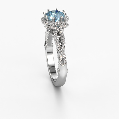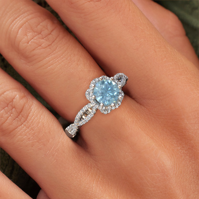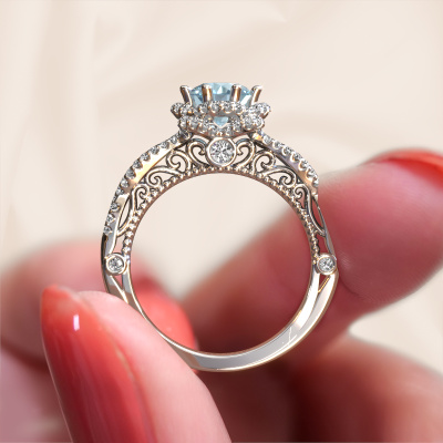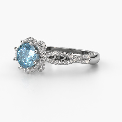 This platinum ring is called Lysanne and is set with 6.5 mm blue lab grown diamond. This filigree platinum engagement ring is a true work of art! A beautifully adorned design of intricate wires. With dedication, patience and the utmost precision, our expert goldsmith will design a ring just for you. The adornment of small wiring is crafted to perfection by hand. It's a lengthy process which includes welding, crafting and polishing until our Goldsmiths are completely satisfied with the result: a perfect eye-catching ring that makes her shine with delight. Therefore the vintage filigree engagement ring is an extraordinary gift to bestow upon the love of your life. A handmade one-of-a-kind personalized ring, to be given to that special someone on that special moment when you pop the question. Isn't that wonderful? This piece of jewellery is made by a team of passionate goldsmiths and jewel designers. This will make your crown jewel truly eye-catching.After receiving your order, our goldsmiths will start the creative process of making your Lysanne engagement ring. We don't keep stock. This is advantageous because these costs will not be passed on to you. Therefore, we can offer jewellery at exceptionally low prices.Have you found a specific engagement ring somewhere which you would like to give to your loved one? Please feel free to express your wishes to our jewel designers because we would be honoured to turn your design into a vintage engagement ring. You can follow the development of your ring design because we use 3D drawings. This gives you a realistic preview of how your design will look. You can also preorder a dummy. A dummy is a plastic ring, which can be shaped according your ring design. You can try it on and check if its width and size are suitable for you. We will gladly send you a non-binding offer, based on a fair price/ quality ratio. It will amaze you, considering the quality of the ring and gemstones.To make it easier for you, we offer a 30 day return policy. Check our terms and conditions.