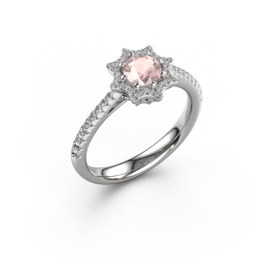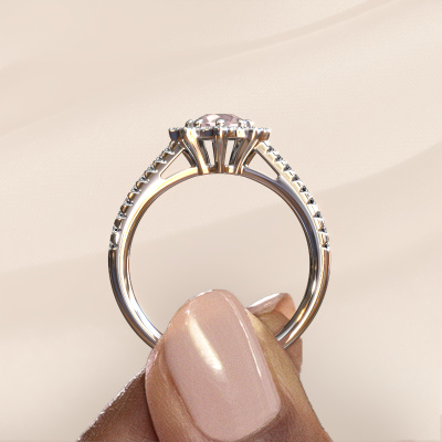 This platinum ring is called Zena and is set with morganite champagne. An extraordinary platinum vintage ring. One that will surely make the love of your life shine like a diamond! That is what we hope to achieve. This fantasy engagement ring is