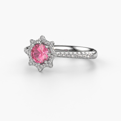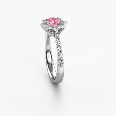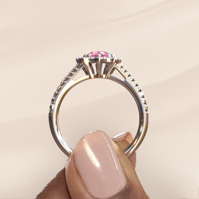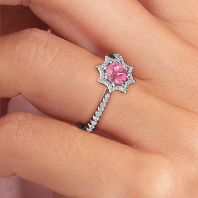 This platinum ring is called Zena and is set with pink sapphire. An extraordinary platinum vintage ring. One that will surely make the love of your life shine like a diamond! That is what we hope to achieve. This fantasy engagement ring is set with