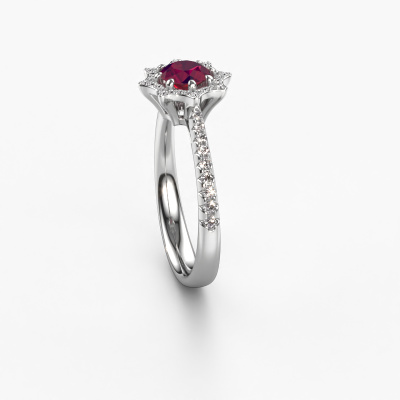This platinum ring is called Zena and is set with rhodolite. An extraordinary platinum vintage ring. One that will surely make the love of your life shine like a diamond! That is what we hope to achieve. This fantasy engagement ring is set with