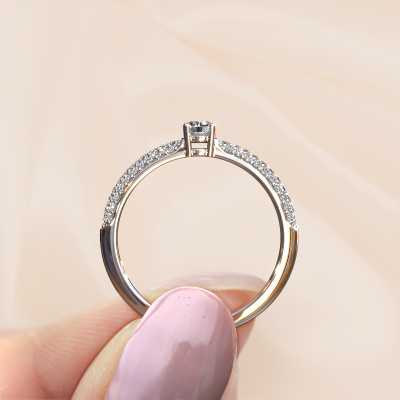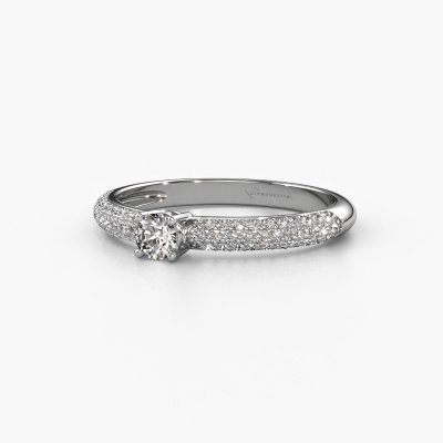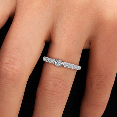 The ring shown above is called Marjan. We call this a pave ring. The smaller gemstones of pave ring are set in a close row which gives it an extra shine. This platinum ring is set with diamonds 0.460 crt. The ring shown above is called Marjan. We call this a pave ring. The smaller gemstones of pave ring are set in a close row which gives it an extra shine. Which emotion would you like to convey when you get down on one knee for her? This platinum engagement ring is pave set with stunning diamonds to represent your everlasting love. The gemstones are carefully hand selected and set by our goldsmith. The unique reflection of light on the ring can only be captured if the diamonds are set in a perfect line. During the crafting and polishing of the jewellery, light fall is constantly monitored, until the expert goldsmith is satisfied with the result. A ring designed just for you to make your loved one shine bright like a diamond. Because there is only one special person fit to wear such a unique ring! With this meaningful piece of art, the symbol of infinity, you will prove your undying love for her and that you want to share the rest of your life with no one else. How will she be able to resist? This piece of jewellery is made just for you, with attention to detail and design.By using our modern techniques, we can design and customize the finest quality jewels with the utmost care for you. Our engagement rings are always priced 30 percent lower than other jewellers. We make engagement rings to order so we don't have to maintain a large stock. If you have a certain budget, we are more than happy to advice you accordingly.Have you found a specific engagement ring somewhere which you would like to give to your loved one? Please feel free to express your wishes to our jewel designers because we would be honoured to turn your design into a exclusive engagement ring. You can follow the development of your ring design because we use 3D drawings. This gives you a realistic preview of how your design will look. You can also preorder a dummy. A dummy is a plastic ring, which can be shaped according your ring design. You can try it on and check if its width and size are suitable for you. We will gladly send you a non-binding offer, based on a fair price/ quality ratio. It will amaze you, considering the quality of the ring and gemstones.To make it easier for you, we offer a 30 day return policy. Check our terms and conditions.