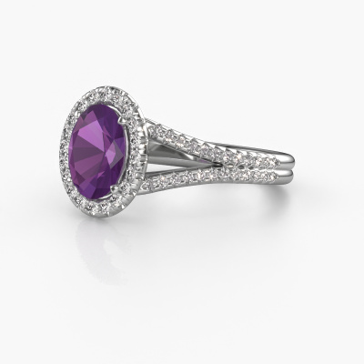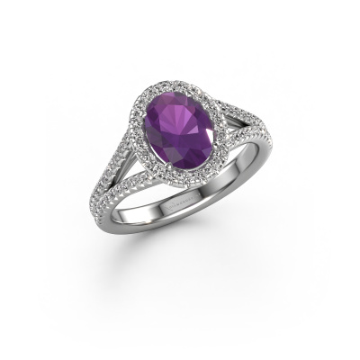 This platinum ring is called Verla ovl 2 and is set with 8x6 mm amethyst. Does your girlfriend fancy exclusive jewellery? Or would you like to show her that she deserves the finest jewellery? This platinum ring is pure craftsmanship, love and passion combined with the latest techniques coming together in perfect harmony. It requires a keen eye, patience and a skilful hand to mould this ring into perfection. Just the job for our expert goldsmith! The amethysten set gemstones gives this platinum ring an extra glamorous appearance. Customize the style of the split band engagement ring to her liking with a wide variety of precious metals and gemstones which you select. That is how you create a unique ring for the most exclusive woman in your life! This jewel is made by a team of passionate goldsmiths and jewel designers. This will make your crown jewel truly eye-catching.By using our modern techniques, we can design and customize the finest quality jewels with the utmost care for you. Our engagement rings are always priced 30 percent lower than other jewellers. We make engagement rings to order so we don't have to maintain a large stock. If you have a certain budget, we are more than happy to advice you accordingly.Our team adds new designs to our online collection daily. Our designers and goldsmiths work together in creating the best design. We strive to offer a diverse collection of jewels. Perhaps you have a specific jewel design in mind. One you came across somewhere. Please contact us for a free consultation. We will make you an offer, based on a fair price/ quality ratio, that will baffle you.To make it easier for you, we offer a 30 day return policy. Check our terms and conditions.